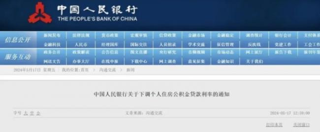 中国央行官网今(17)日中午发布《中国人民银行关于下调个人住房公积金贷款利率的通知》。 图:翻摄自中国央行